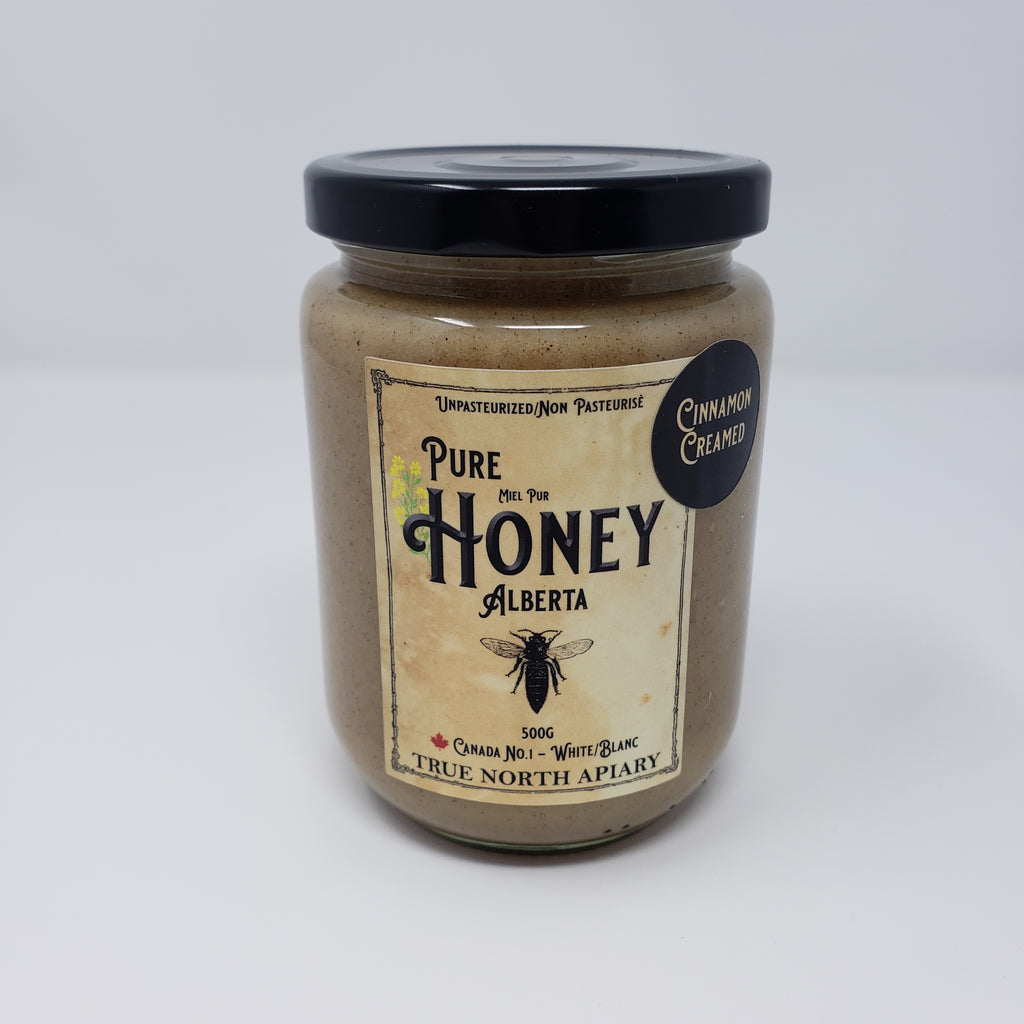 This is our regular creamed honey with added cinnamon. Cinnamon creamed honey is by far the most popular flavored honey. Creamed honey is made by controlling the crystallization process that all raw honey will naturally do on its own over time. The biggest difference between controlled and natural crystallization is how the crystals form and multiply. In the creaming process the crystals are formed in very small smooth crystals that make for a pleasing taste and texture. Honey that is left to crystallize on its own will have large sharp crystals. Whether you control crystallization or let nature take its coarse, either can be returned to its original liquid form by gently heating.